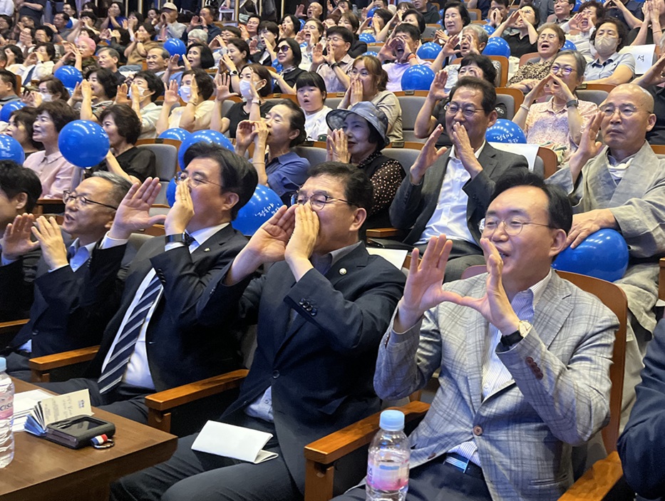 전남정치의 미래를 담은 전남혁신포럼 출범식이 막바지를 향해 갔다. 2022년 순천시장 선거에서 민주당 후보였던 오하근 전 도의원을 비롯해 내년 순천시장 예비후보들이 인사를 했다. 이학영 국회부의장, 문금주, 용혜인, 윤건영, 박선원, 김병주, 서영교 의원은 영상으로 축사를 보냈다. 조이풀앙상블의 ‘아름다운 나라’ 공연과 참석한 모든 사람들의 합창이 진짜 전라남도와 정치혁신을 만들어 가는 도민들의 힘찬 여정을 알렸다.