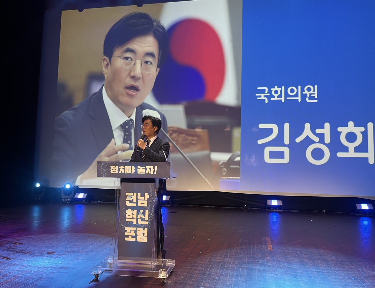 김성회 의원은 혁신을 하려면 정치인도 바꿔야 하고 정치 문화도 바꿔야 한다. 공천도 바꿔야 한다. 호남 민주당이 나서서 대한민국을 끌고 나가야 한다고 했다. 김 의원은 전남혁신포럼을 추진하려고 했던 사람은 바로 이재명 대통령이라며 이 대통령과 함께 선거 유세를 하기 위해 타고가는 차에서 나눴던 일화를 소개했다.