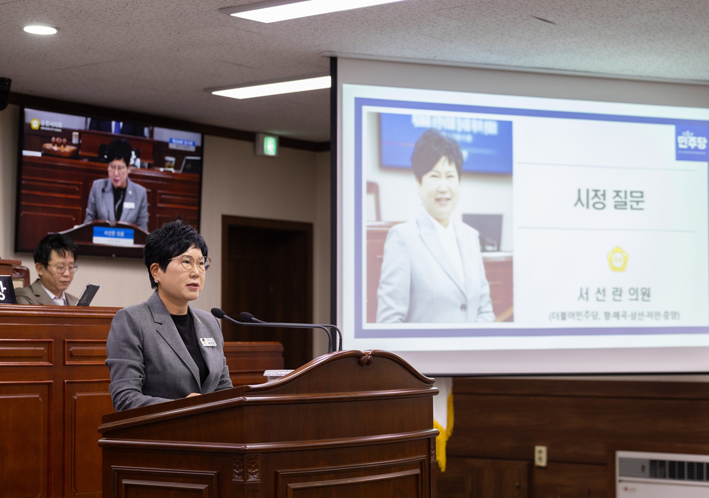 서선란 순천시의회 의원이 노관규 순천시장에게 시정질문을 하고 있다. 사진=순천시의회