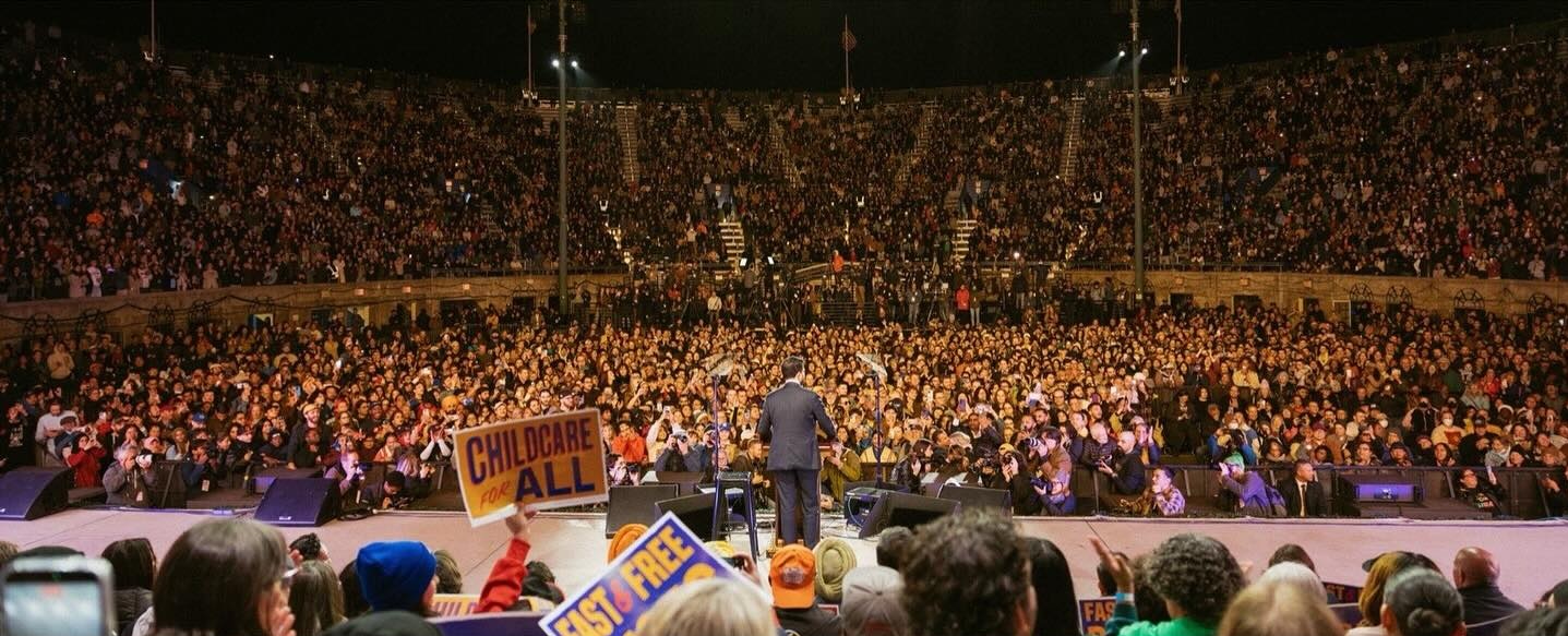 이 시대는 뉴욕 시민들이 지도자들에게 우리가 이루려는 것에 대한 뻔뻔한 변명보다는, 우리가 이룰 것에 대한 과감한 비전을 기대하는 시대가 될 것입니다. 그 비전의 핵심은 이 도시가 겪어온 생계비 위기를 해결하기 위한 가장 야심찬 의제입니다. 200만 명이 넘는 세입자의 임대료를 동결하고, 버스를 빠르고 무료로 운행하며, 도시 전역에 보편적 보육 서비스를 제공하는 의제입니다.