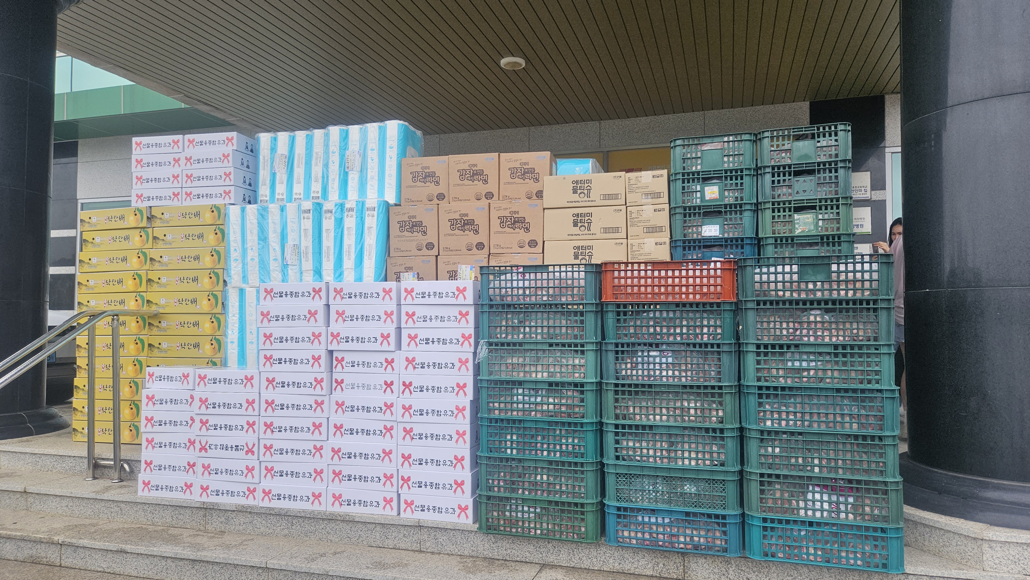 지난 24일, 순천만요양병원 앞마당에는 선물 꾸러미처럼 보이는 박스들이 차곡차곡 쌓였다.