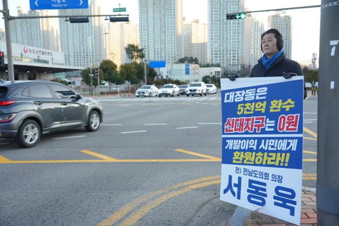 서동욱은 지난해 7월부터 전남도의회 특별위원회를 통해 1806억 원 규모의 개발이익 환수를 요구하고 있다.