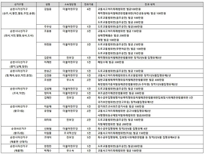 순천시의원 예비후보 44.8%가 전과자... 음주운전·교통사고 많아